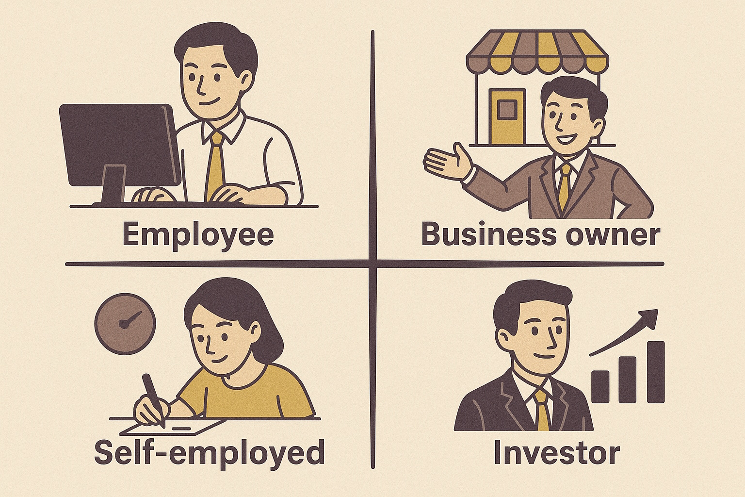ロバート・キヨサキは「キャッシュフロー・クワドラント」というフレームで人々を4種類に分類しました。